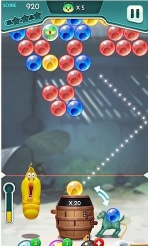 逗逗虫消泡泡在这里大家能看到熟悉的动漫小虫形象,这是由韩国团队打造的游戏用的就是现在比较火爆的倒霉虫来作为这里面的主题。游戏的玩法就是泡泡龙通过击打相同颜色的泡泡珠子,即可完成关卡给出的消除任务。在这里可以使用不同的道具来帮助你完成,在关卡的下方会显示出来上面有绿色数字显示就是你拥有的,红色的加号就是可以购买。