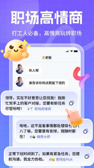 2、【职场生存】职场模式随心选,一键生成得体回复,塑造专业形象。