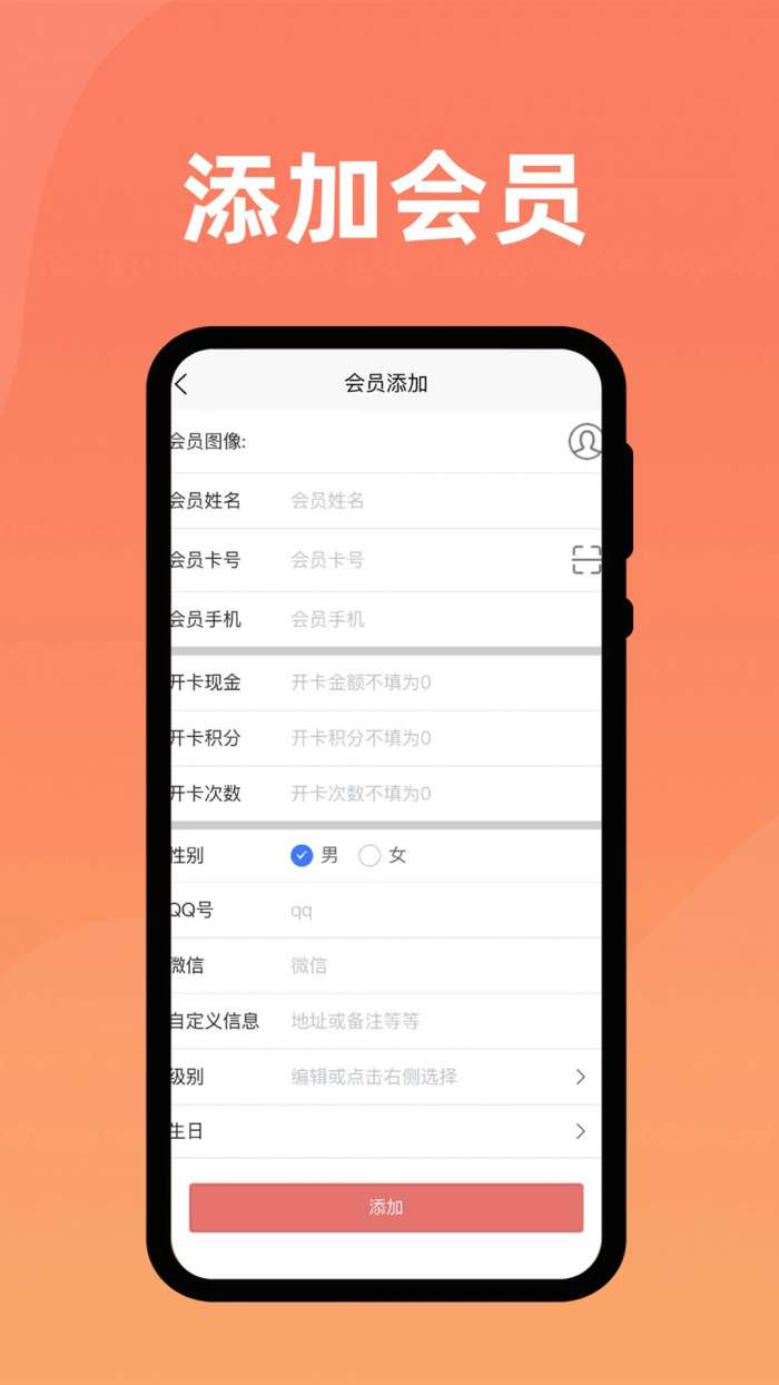 会员添加功能:管理本店会员信息,记录会员卡余额信息等数据。