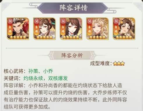 阵容组成:孙策+孙尚香+大乔+步练师+小乔