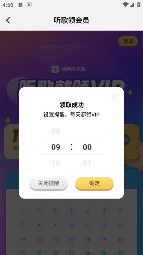 3、【点击即领】,还可以设置提醒签到,每日听歌免费领取VIP。