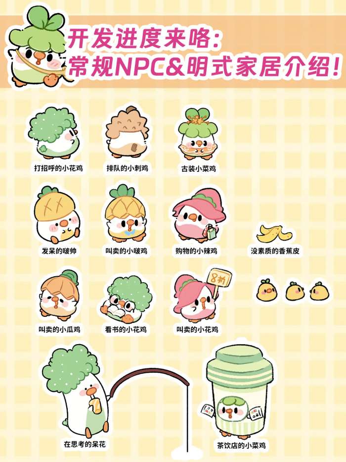 游戏NPC分为两类,一类是特殊npc,他们一般有特殊的剧情和角色设计,是整个小菜鸡故事观的推动者。另一类就是常规NPC、他们一般来说只有简单的动画和台词但也是游戏中非常重要的一部分。