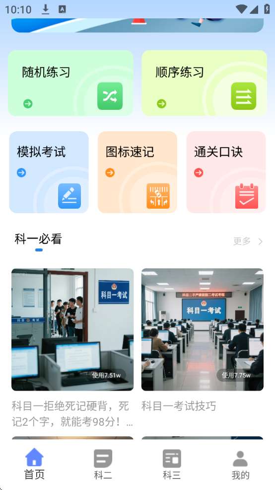 支持顺序练习、模拟考试、随机刷题多种模式,灵活备考,全方位巩固驾考理论知识。