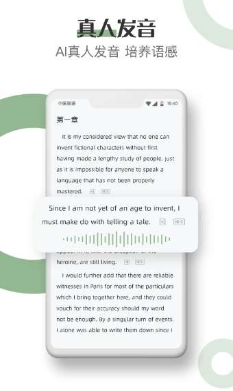 3、【真人发音】 基于神经网络AI学习,原汁原味的英式和美式发音,矫正错误发音,让你沉浸在英文语境中。
