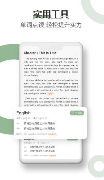 1、【中英双译】 提供双语阅读自由切换,让天下没有难读的英文小说,看懂听懂BBC英语、VOA英语、ESL、英语作业、英语考试。