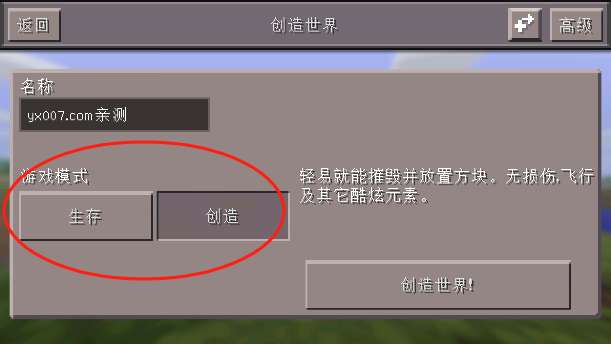 4、选择生存还是创造模式,选择完毕后点击创造世界。
