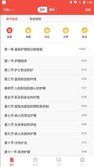 1、首先下载登入护考帮,在题库的每一章节中可以学习护理知识。