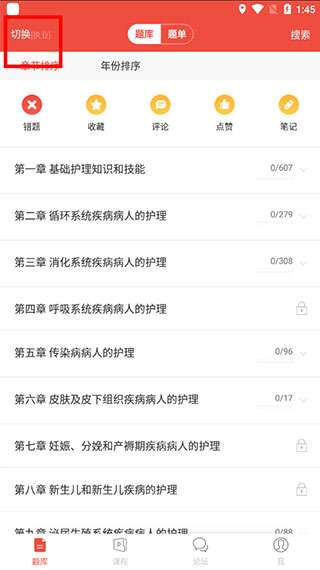 3、在题库界面的右上方点击切换。