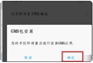 3、安装提示弹出,确认安装事宜,系统将自动启动GMS安装流程,安装完成后手机会重启。