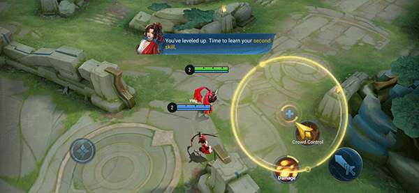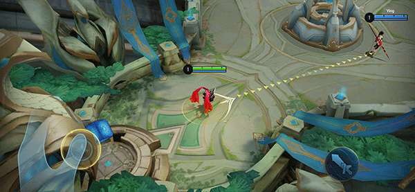1、玩家在进入游戏后,通过左边的摇杆去控制角色的移动走位。