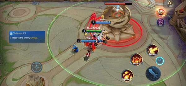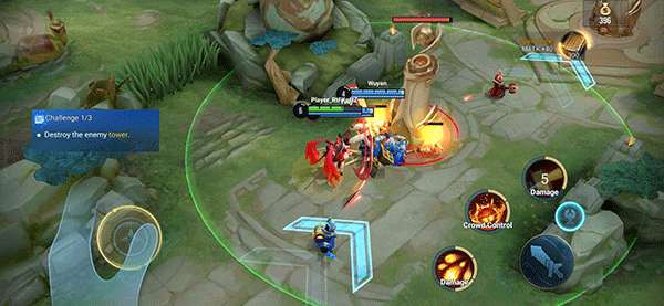 7、游戏胜利条件为哪方成功将对方的高地防御塔摧毁,哪方就可以胜利,所以我们除了与对方角色进行对战外,玩家还需要推塔,等我方小兵进入防御塔内并承受伤害后,我们就可以使用普攻将防御塔摧毁。