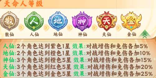 通过提升角色品质,解锁“天命人”等级,获得全队对战增伤/免伤: