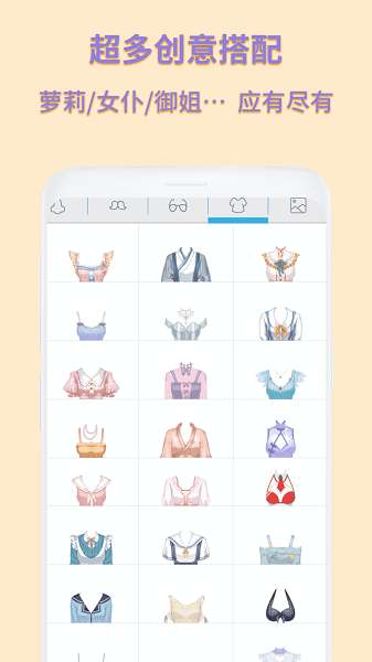 2、搭配自由:提供了丰富的发型、服饰、配件等选择,可以自由搭配,打造独特的动漫形象。