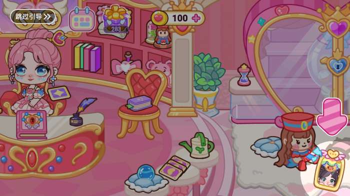 3、在房间内,互动角色(如粉发女孩、戴帽角色),完成任务得奖励,用爱心值解锁新内容。