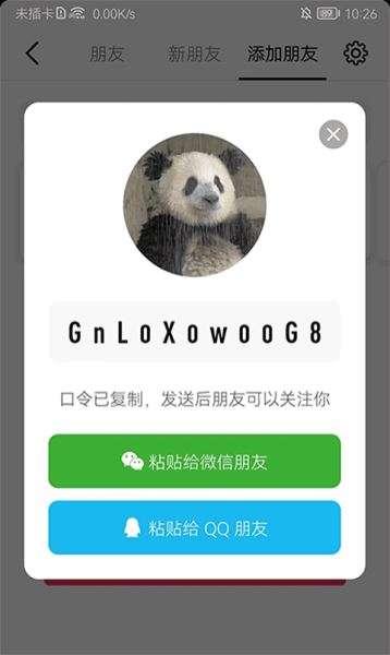 4、可通过其他社交软件将加密口令或者自己的抖音号分享给好友。