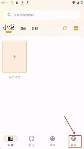 2、进入阅读界面,可以选择小说,漫画,影视。