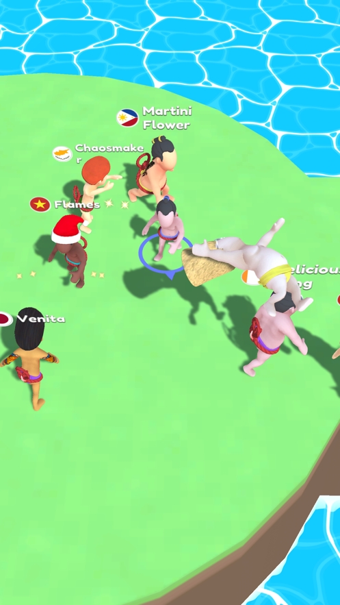 Sumo.io 3D这款游戏相扑为挑战方式,你需要选择自己的人物形象,然后进行线上的PK挑战。梅轮比赛都会匹配不同国家地区玩家在一个场景中进行挑战,只要能够成功的把对手扔出去,并投入水中就可以PK掉一个。