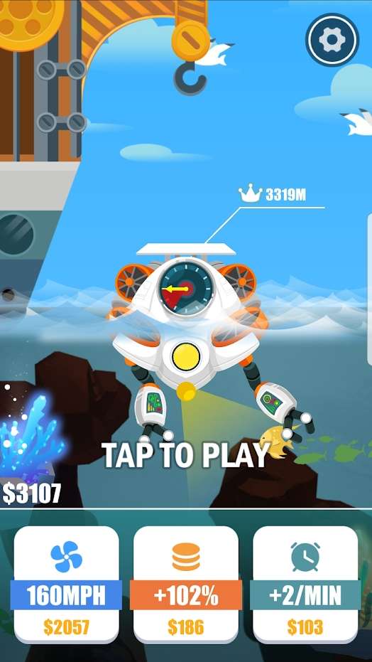 潜艇船长这款游戏里面单挑变身成了一个会驾驶,潜水艇的船长快点能够去到更加深层的海洋中去收集一些研究样本,需要驾驶迷你的潜水艇在海洋里面下潜,并且用探照灯,还有机械手臂来采集,深海中的生物样板。在这里可可在官家庄看到自己下潜的深度有多深,还有就是看到不同的深海鱼类样貌。在这里会提供三个升级的按钮来帮助大家完成挑战,分别是夏天的生日,以及每分钟产生的收益,还有就是可以在海洋深处坚持的时间。