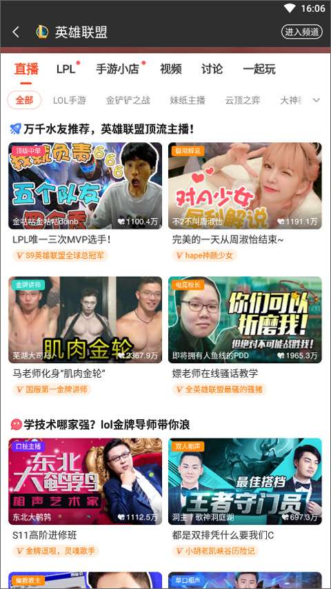 斗鱼不仅在游戏直播方面独树一帜,更拓展了体育、娱乐等多种直播内容,让你在享受游戏乐趣的同时,也能领略到其他领域的精彩。更有众多美女帅哥主播与你实时互动,让你的观看体验更加丰富多彩。这里有最热门的赛事直播,最具有人气的职业选手风采,最搞怪逗趣的直播瞬间,以及最有创意的主播表演。一切精彩,尽在斗鱼!有需要的小伙伴现在就来本站下载体验吧!