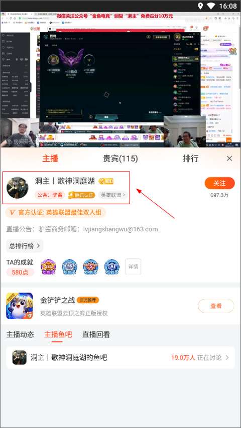 3、然后再点击主播头像即可进入主播主页。
