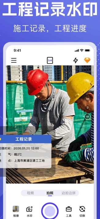 3、使用软件拍摄水印照片,可以实现工程记录并记录更多工程日志。