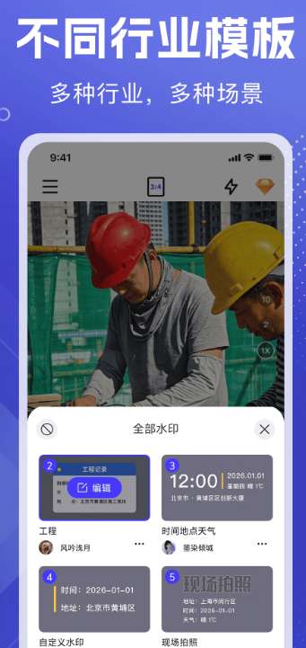 全能可修改水印相机app水印可以轻松添加,允许在照片上显示有用的内容,如拍摄时间、天气等。它非常适合用于办公卡。内容设置可以自定义,可以定位特定位置,还可以选择多种模板样式。操作简单便捷,让每个人都能轻松拍摄照片并完成卡片制作。它还提供滤镜和贴纸材料。如果你想拍摄漂亮的照片,也是可以的。该平台会不断更新各种水印模板,让用户可以获取不同行业和不同场景的模板,让你有更多选择。