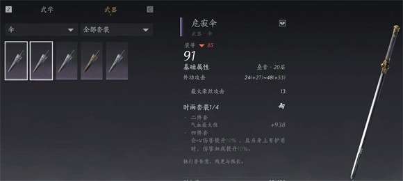 3、伞,伞这把武器适合与扇子搭配,伞的武器压制力很强,打一些小怪可以压住让他们起不来,缺点就是容易挡视野。
