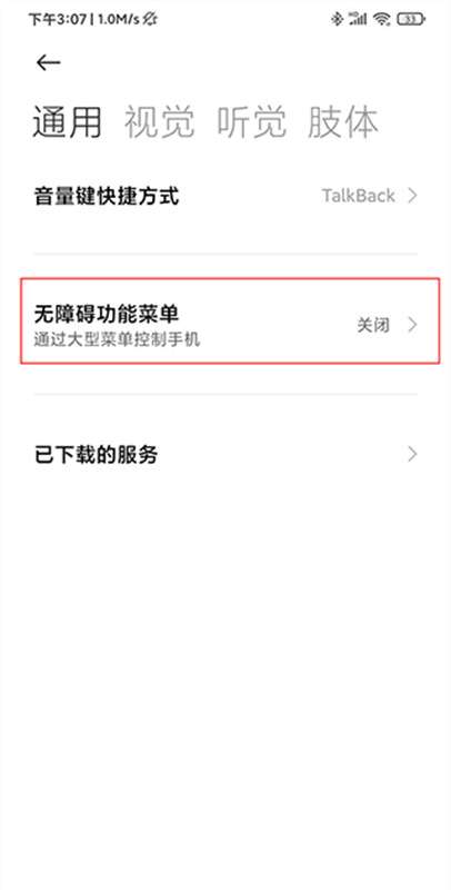 2、点击“辅助功能权限”后,找到“无障碍功能菜单”,是默认关闭的,需要开启。