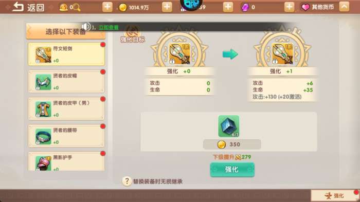 1、强化装备需要消耗材料和金币。