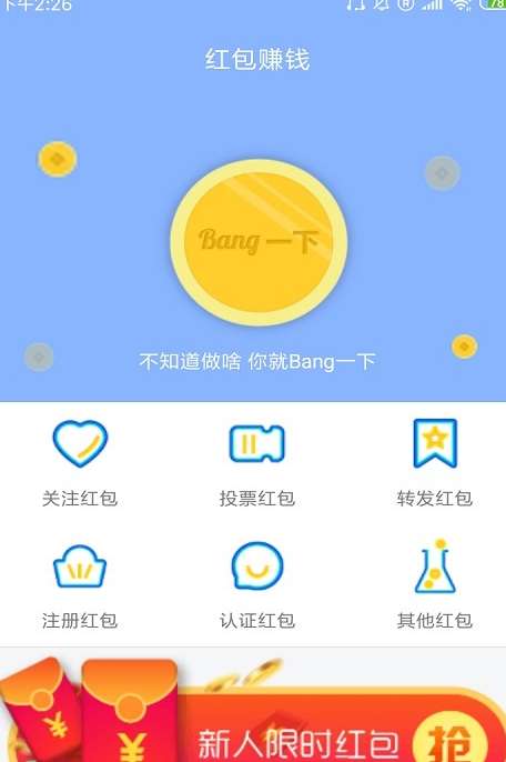 1、新用户登录的话,可以直接送你一个红包,大概有5毛钱左右。