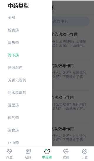 3、中药阁页面,有解表药、清热药等各种中药分类。