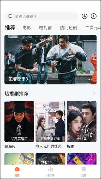 1、在软件首页上,我们能够看到推荐、电影、电视剧、热门短剧、二次元动漫等一系列板块。