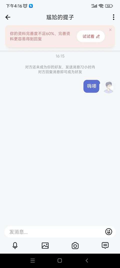 4、之后即可朝对方发送消息进行搭讪了。