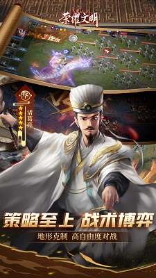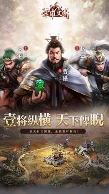 荣耀文明是一款以古文明为题材的国战手游,游戏回归正统SLG玩法,不抽卡、全景即时,给玩家带来充满激情的战斗体验!游戏采用经典剧情还原了真实的古文明历史,在这片玄幻世界里,玩家需要打造自己的势力,收集培养武将,排兵布阵组成强力阵容征战沙场,击溃所有来势汹汹的敌人,争功抢爵,胜者为王!还提供了二十四小时不间断的国战玩法,玩家可以随时开启万人国战,体验真实PVP竞技玩法,享受真正的SLG游戏乐趣!