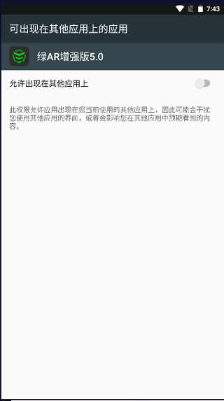 1、下载并安装绿ar增强版中文版,进入主界面,还需要开启悬浮窗设置;