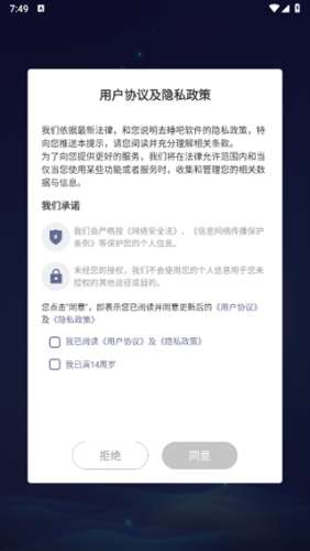 1、下载并安装后打开软件,首次启动时点击同意相关服务协议。