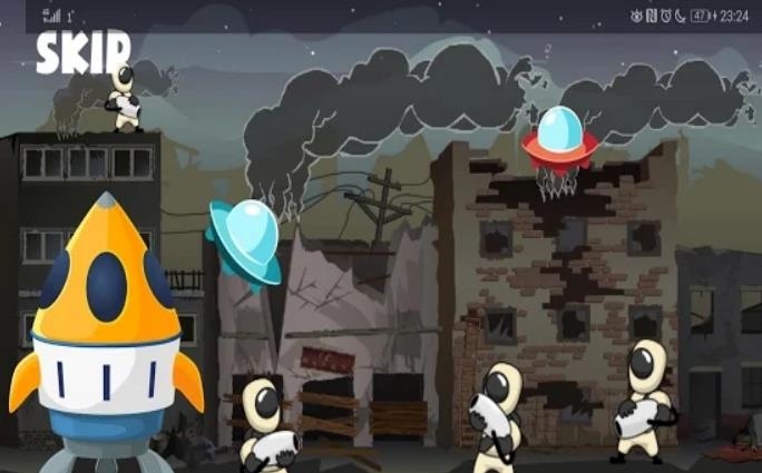 1、关卡中外星人拥有独特的设备,会用弹药对你进行攻击,而你要做的,除了躲避之外,则是收集金币,后续就能够升级自己的角色,提高防御值,还能够购买其他的道具。