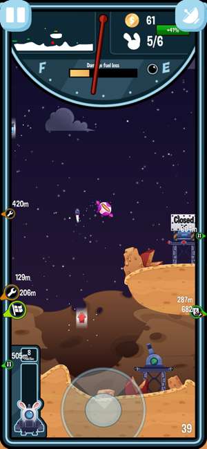 2、画面的左侧还有右侧会显示当前飞行的高的米数是多少,下面还有显示你的飞船能量还有几多;