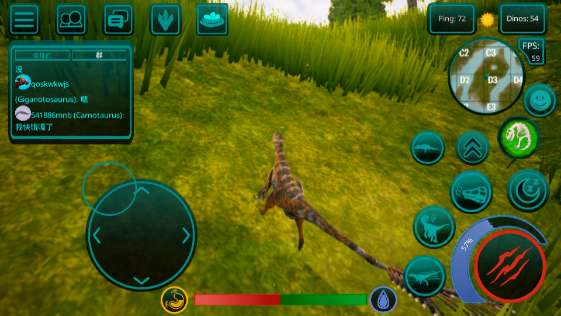1、控制恐龙生存在广阔的游戏世界。逼真的模拟游戏带来身临其境的风格。