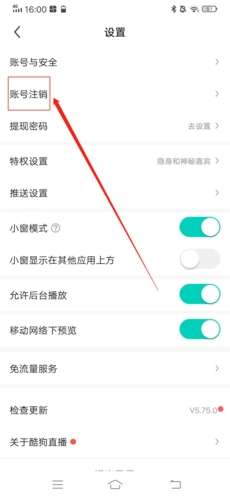 3、在这里我们就能看到“账号注销”的选项了,点击它。
