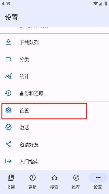 1、在首页点击设置。