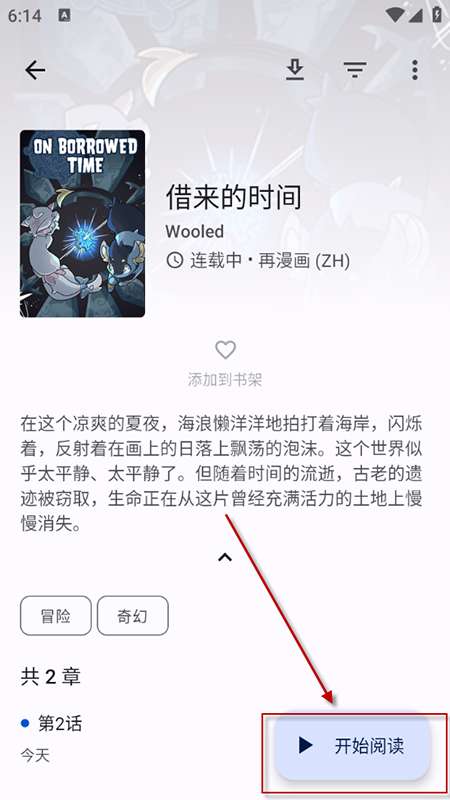 3、在漫画详情页点击“开始阅读”,左右滑动切换章节,支持双击全屏、调整亮度等操作。