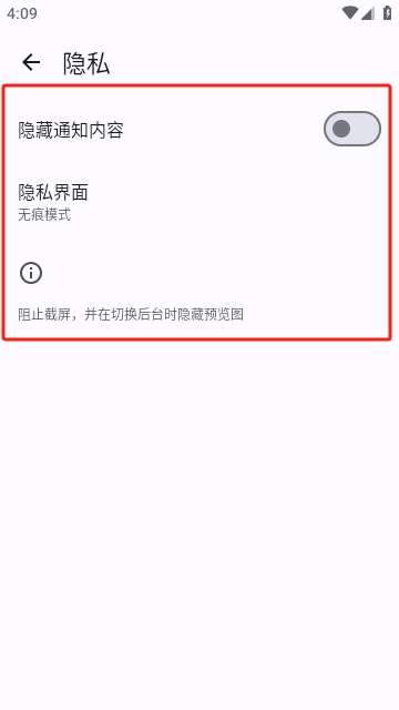 4、在这里可以管理通知栏信息的推送,开启无痕浏览。