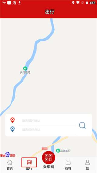 2、点击行程,用户输入起点和终点,这将为用户提供最方便的路线显示。