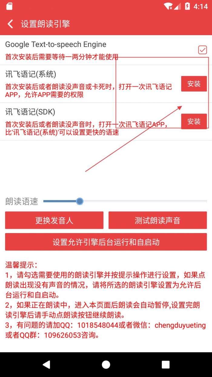 2、提供多种朗读引擎选择,可安装讯飞语记相关引擎,支持调节语速、更换发音人,助力个性化听书设置。