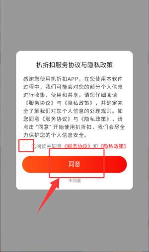 1、下载软件后安装打开,勾选同意服务协议与隐私政策后进入。