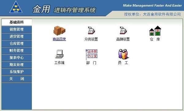 金用进销存管理系统最新版是一款商业进销存管理软件。金用进销存管理系统最新版包含了销售开单、销售退货、业务查询、收银查询、客户管理、进货管理、仓库查询、仓库调拨、领料退料、财务管理、报表中心、期末处理等主要功能。金用进销存管理系统可以随时备份系统中的数据。