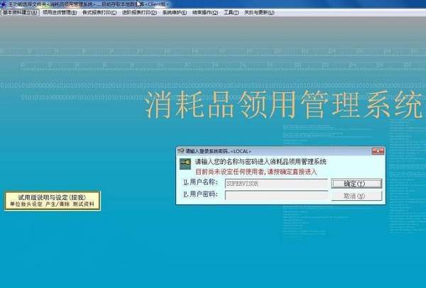 普大消耗品领用管理系统官方版是一款消耗品领用经营管理软件。普大消耗品领用管理系统官方版包含了商品采购、商品销售、商品入库、商品信息管理、商品调拨、仓库管理、仓库预警、仓库明细查询、领用排行、财务管理等主要功能。普大消耗品领用管理系统可以随时备份系统中的数据。