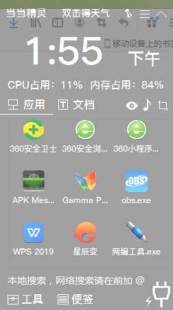 当当桌面精灵官方版是一款功能强大实用,操作简单,界面精美的桌面整理工具,当当桌面精灵最新版软件是受到360桌面助手的启发制作的,当当桌面精灵官方版属于个人开发。当当桌面精灵官方版软件的好处就是简洁,占用内存小,用户使用不需再添加任何插件,保证操作平稳。