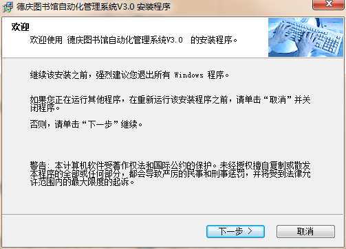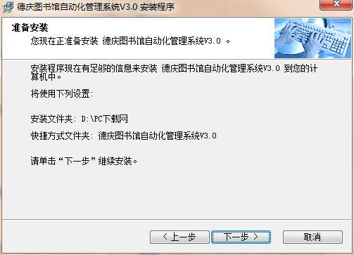1、首先在PC下载网下载德庆图书馆自动化管理系统最新版压缩包,然后进行解压,解压后,双击exe程序,进入安装界面,然后点击下一步